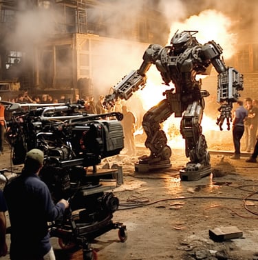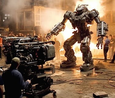 Sample Prompt: Imagine a dynamic scene on a bustling movie set. The star of the show is a robot movie director, its metallic body gleaming under the set lights. It's in the midst of directing an action-packed scene, its mechanical arms gesturing emphatically. In the background, a spectacular explosion erupts, a fiery bloom against a stark sky. Actors in action poses, mid-movement, add to the intensity of the scene. The style should be hyper-realistic, capturing the chaos and excitement of a live action set. The color palette should be vibrant and dramatic, with the fiery explosion contrasting against the cool metallic sheen of the robot. The composition should be a wide shot, capturing the breadth of the action, using a high-resolution 16k camera with a 24mm lens, f/2.8, ISO 200, and a shutter speed of 1/500. --ar 1:1 --v 5.1 --style raw --q 2 --s 750